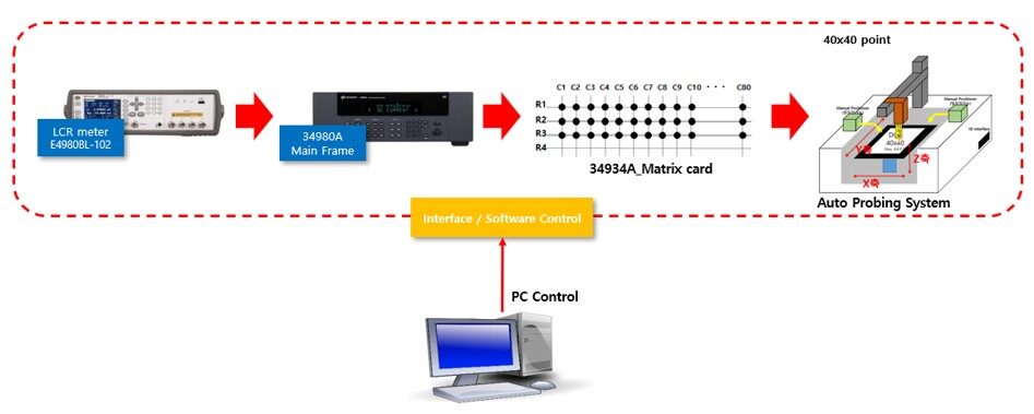 TSP Auto Probing System은 Keysight Technology의 LCR미터와 Probe System을 이용하여 Screen Pannel의 Capacitance 특성을 분석하기 위한 시스템 입니다. Touch Pannel의 수에 맞게 스위칭 매트릭스를 구성하여 다채널 Capacitance 특성이 분석가능하며, 장비추가를 통해 IV 특성도 함께 볼 수 있습니다. 또한, 통합 소프트웨어를 통한 데이터 저장 및 그래프 view, 멀티채널 캘리브레이션도 함께 솔루션으로 제공 합니다.